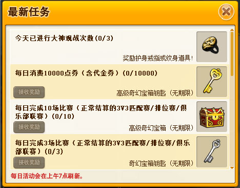 以上任务每日只可完成一次,任务每日上午7点刷新。