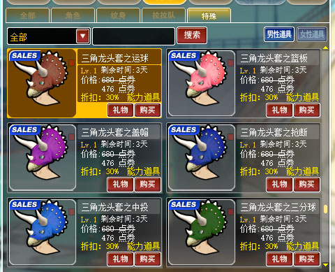 道具商城-特殊-特殊 页签内道具打折,折扣:30%。
