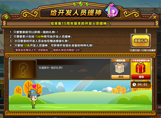 温馨提示:登录会在每天上午7点初始化,一般的礼物总共赠送12次。