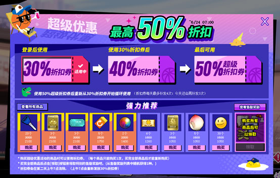 折扣券会在第二天上午7清除。(上午7点会重新发放30%折扣券)