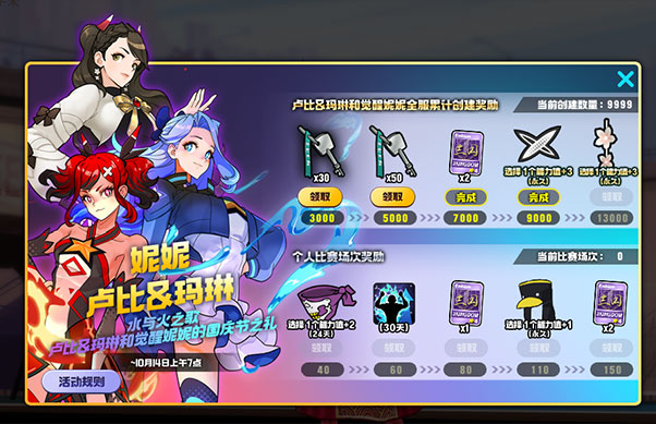 完成全部个人场次任务后,即使没有卢比&玛琳或觉醒妮妮也可以领取全服累计创建奖励。
