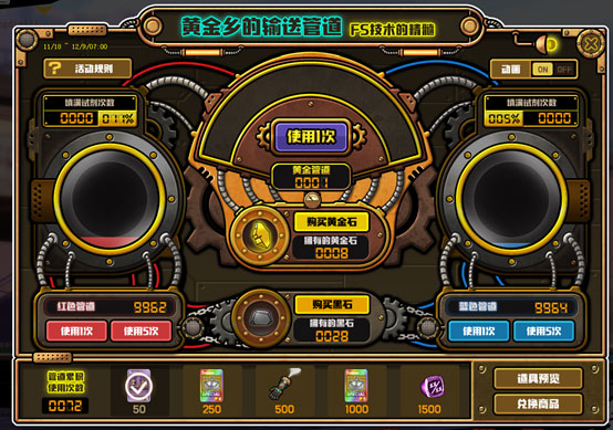 在拥有“黄金管道”的情况下,使用黄金石可以激活黄金管道,并获得更高级的道具。