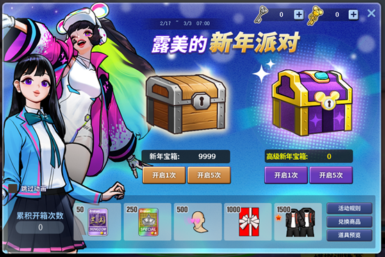 打开新年宝箱有概率获得“高级新年宝箱”,可以使用“高级新年宝箱钥匙”打开。
