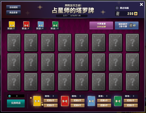 未翻完24张卡片时可以消耗1000点券进行重置。翻完24张卡牌后可以免费进行重置。