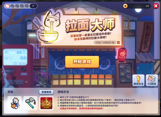 根据每次获得的拉面金币,小游戏结束后获得奖励概率会不同。