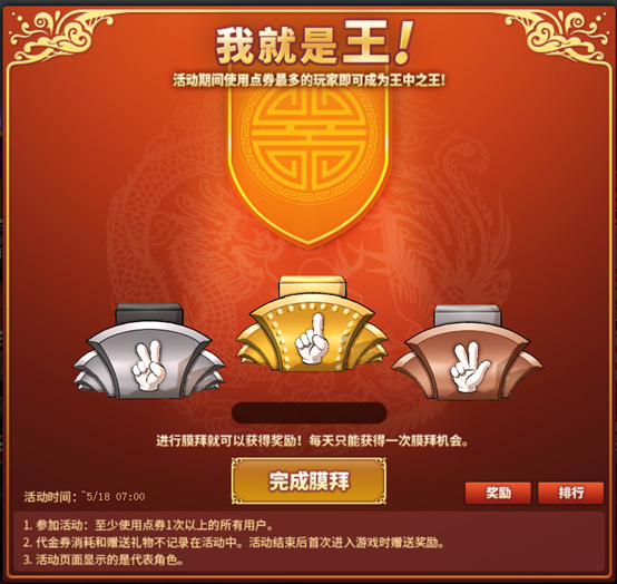 活动期间使用点券最多的玩家成为王中之王!