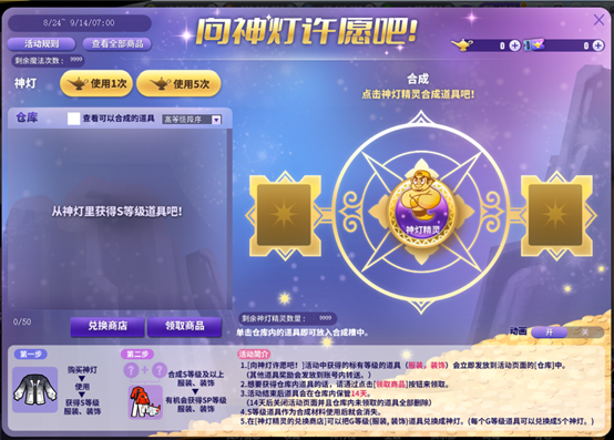 活动中获得的标有等级的道具(服装,装饰)会立即发放到活动界面的[仓库]中。