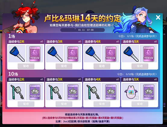 根据连续参与天数来赠送礼物。