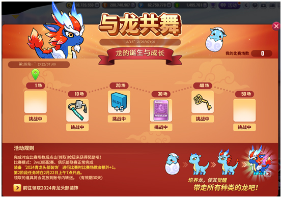 装备”2024青龙头部装饰”进行比赛时比赛场数会额外+1。