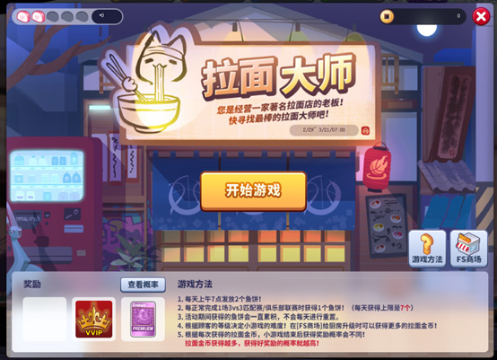 根据每次获得的拉面金币,小游戏结束后获得奖励概率会不同。