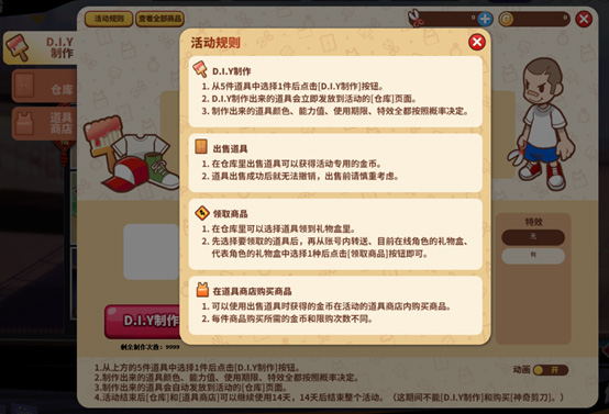 制作出来的道具颜色、能力值、使用期限、特效全都按照概率决定。