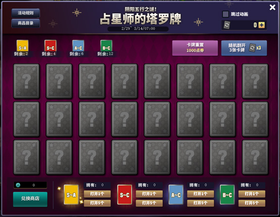 未翻完24张卡片时可以消耗1000点券进行重置。翻完24张卡牌后可以免费进行重置。