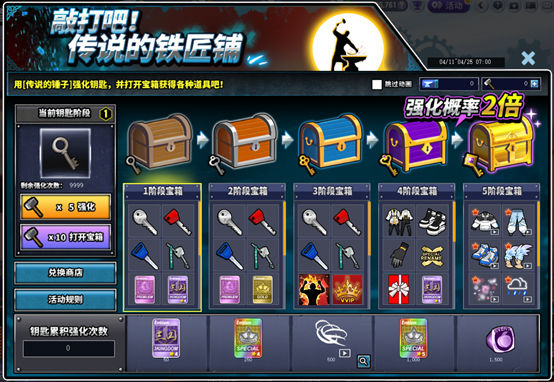 [强化]钥匙和打开宝箱所需的传说的锤子数量根据当前钥匙阶段来决定。