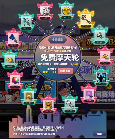 昨日缺席的玩家可以完成10场比赛再次盖章。