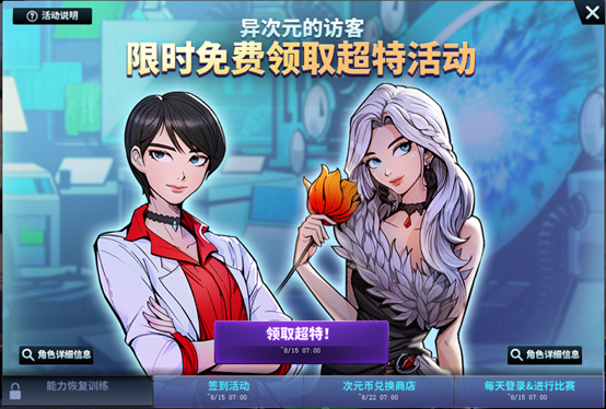 异次元世界角色再度来袭,活动期间可以免费创建一个4种能力被限制的超特角色。