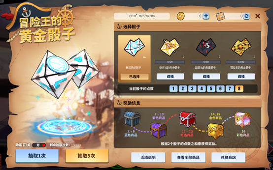 抽取次数达到指定次数时,可以获得特殊骰子。