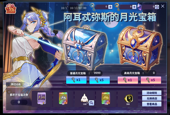 打开普通月光宝箱有概率获得“高级月光宝箱”,可以使用“高级月光宝箱钥匙”打开。