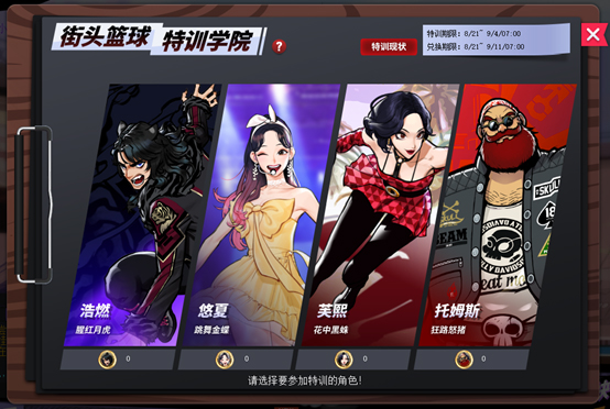 “街头篮球特训学院”中可以获得“街头篮球学院”角色的专用动作或增益强化,但是最多可以拥有7个。