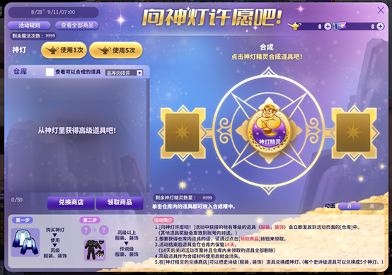 活动中获得的标有等级的道具(服装,装饰)会立即发放到活动界面的[仓库]中。