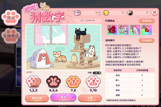 点击[设置]按钮选择4个数字后,再点击[挑战]按钮来挑战猜数字。