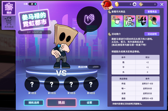 点击[设置]按钮设置4个回合的石头剪刀布后点击[挑战]按钮来挑战姜马禄。