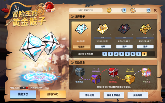 抽取次数达到指定次数时,可以获得特殊骰子。