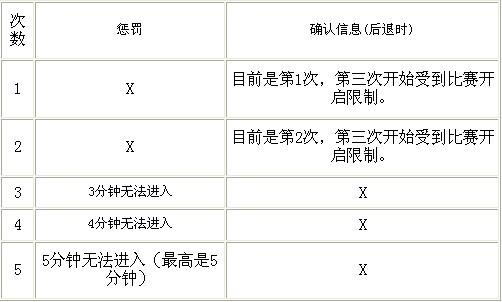 备注:惩罚次数可以由之后的比赛次数抵消,(如:强退了2次后,再打两次完整的比赛即可抵消惩罚)
