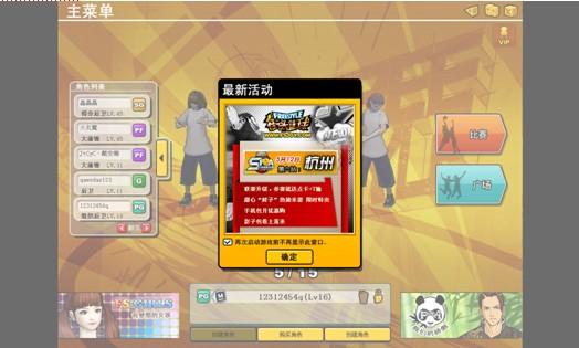 4. 账号登陆后到人物选择界面活动窗体添加“再次开启游戏前不再提示本窗口”功能:
