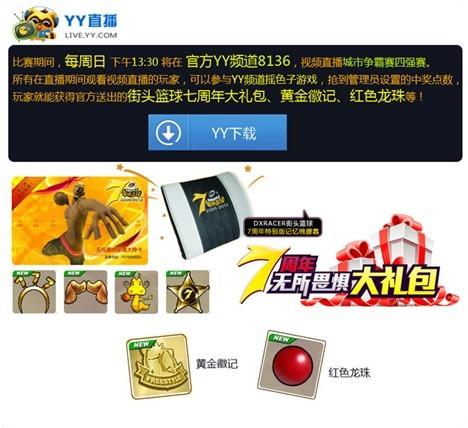 活动三:官方YY视频直播城市四强赛,珍贵道具每周送