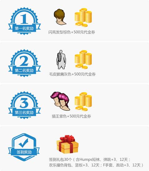 本次赛事现场签到前30名可获得签到礼包(含Humps短袜、弹跳+3、12天;欢乐撞色背包、篮板+3、12天;F手套、跑动+3、12天),共30个,先到先得。
