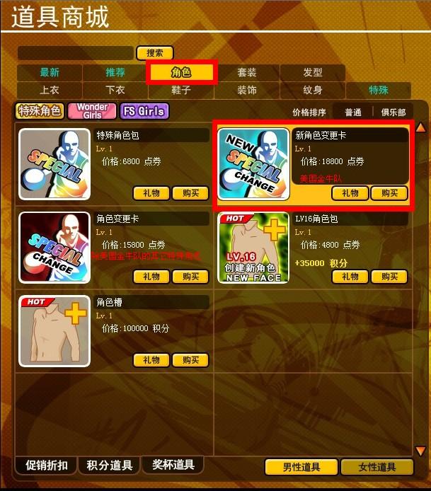 1、原来的人物变成特殊人物,除了异性道具和专属道具外,所有已购买普通道具、技能槽、训练、技能、FreeStyle、战绩、经验、荣誉全部保留。
